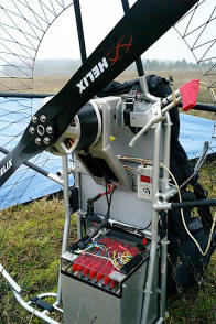 controller (699 €) on its own to frame builders. 4. The prototype weighs 31 kg and they will I think that it is possible to make less than 30 kg ready for the use. 5 We have 14 kg of batteries (13S 40Ah LiPo Kokam) on our foot-launch demonstrator. 6 Special charger/balancer LiPo for typical 4 hours charge. 7 At the 2010 Basse Ham show, our test pilot was in the air for 42 minutes without help from thermals and using conservative throttle management on the standard 13S LiPo 40 Ah pack. Normal flights, in still weather last about 30 minutes. For more pictures, check out their Picasa site. US pilot Pierre Jean Beney is using a Parawatt motor in Nevada. Here are some of his videos. here and here. You can also reach Louis Fourdan at +33 1 42 37 20 06. Also, check out the electric Trikebuggy with New Propeller from Aerofortis here. You can also contact Parawatt president Pierre RENAULT at parawatt@orange.fr. Apr 7, 2010 Pierre Renault, France This system is currently for sale either as a complete paramotor or just the drive. These guys have been quietly building an electric machine for the past four years--work that has paid off by creating a salable drive train that can be used by other makers. After seeing pictures, I inquired with the usual questions and the lead developer, Pierre, was most helpful. Computer translators are remarkable, making up for my utter lack of foreign language skills and letting us communicate reasonably well. ParaWatt's story involves four "impassioned technicians" who have worked on the electric paramotor for more than 4 years, testing many existing motors, and finding nothing that approached what they wanted from a quality point of view of, reliability and safety. So they created one. The one in these pictures is their fifth prototype. Here are the specifics, provided verbatim, from Pierre using a computer French-to-English Translator. 1 The price of the engine is of 1794 € and the price of the controller is of 699 €. We do not propose complete paramoteurs, but only the engine intended for manufacturers of paramotor or light ULM. 2 The price of battery 13S is approximately 1600 € at Kokam in Korea. 4 The weight of our prototype is 31 kg, but it is a laboratory. I think that