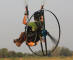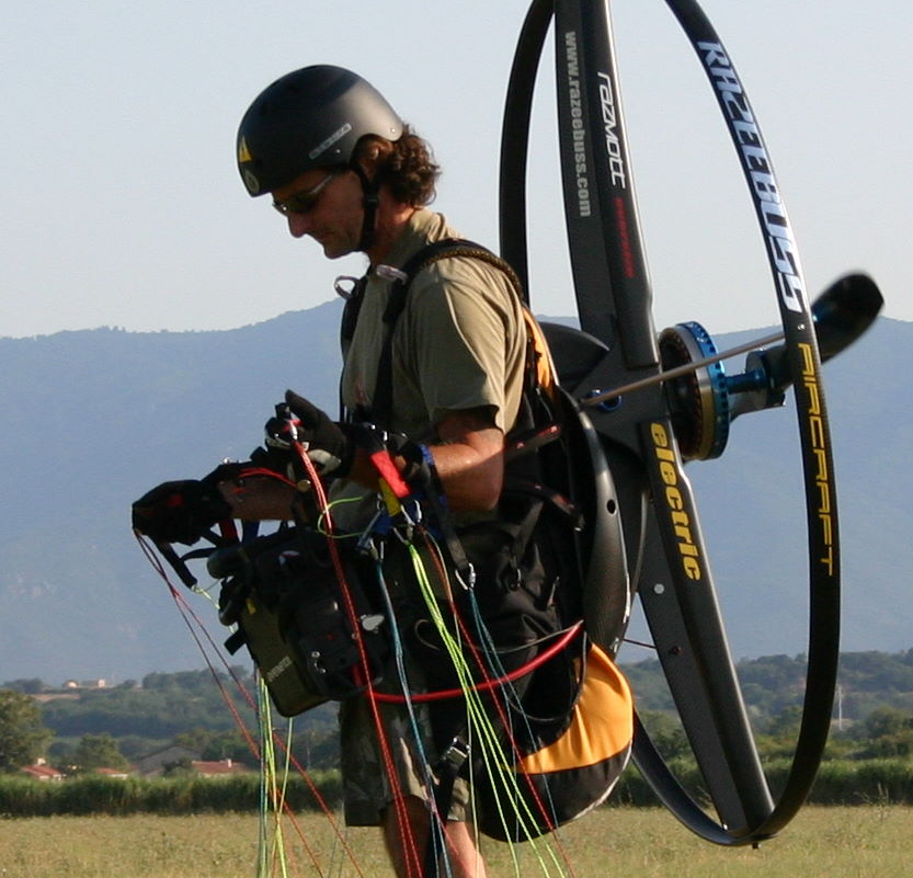 RazeebusFranceOct 2, 2009 Sarl Razeebuss Aircraft has moved on to their next level and it looks quite refined. They are building their first batch of 10 units which will should be on sale to the public by early spring. Fortunately, it now includes rudimentary prop protection, mostly to allow forward launches in no wind while providing some hand/leg protection. With no netting, this obviously isn't a machine for beginners. Their mission is different than most, focusing on getting soaring pilots aloft without needing mountains or tows. Such a mission is reflected in the minimalist and clean cage design and folding prop. Of course it would work for tooling around, too, but you'd probably want bigger batteries for that. They've now adopted the Fresh Breeze drive system and are using a more conventional prop. The designer/builder hopes to make a trip to the U.S.A. and I'd love to fly one of his creations if given the chance. For soaring pilots especially this could be a great ride to cloud base. It won't be cheap, as you can see from the sidebar specs and prices, but then nothing new ever is and Lithium Polymer batteries are still extremely expensive. At the sizes required of one pound model planes they're not bad, but when scaled up to loft 250 pounds of paramotor and pilot, the required power, and thus battery size (read expense) skyrockets. Here are some pictures of the craft in action. Nov 17, 2007 Electric paramotors are an elegant way for soaring enthusiasts to climb into thermalville. French constructor Razeebuss Aircrafts is working to satisfy their desire with the Razeebuss electric paramotor. The Razeebuss has been test flown to an altitude of about 1500 feet, certainly enough to catch a thermal. As of this date there is only one prototype flying with another on the way. I have talked with one pilot who has seen it fly and several European free-flight magazines have featured the machine. It goes all out for performance, especially power off. In their drive to decrease drag they have eliminated the protective cage for a huge premium of risk. It is, of course, incredibly likely for casual pilots using such a machine frequently that they will lose a limb or worse. It happens if the pilot runs afoul of the propeller arc accidentally or it unexpededly goes to power with a body part in the way. Maybe a folding cage could be devised that must be in place for the prop to spin. That protects both the cage and soft operator. You launch with the cage locked in the extended position. Then, after shutting down, push a release and the cage folds back. Having made the risk trade-off clear, I'm a big fan of letting the buyer choose his/her own danger level and only want to provide education. I'm also glad to see these folks innovate and hope, like all efforts, that they are successful at bringing their machine to market. For more information, visit www.Razeebusss.com.